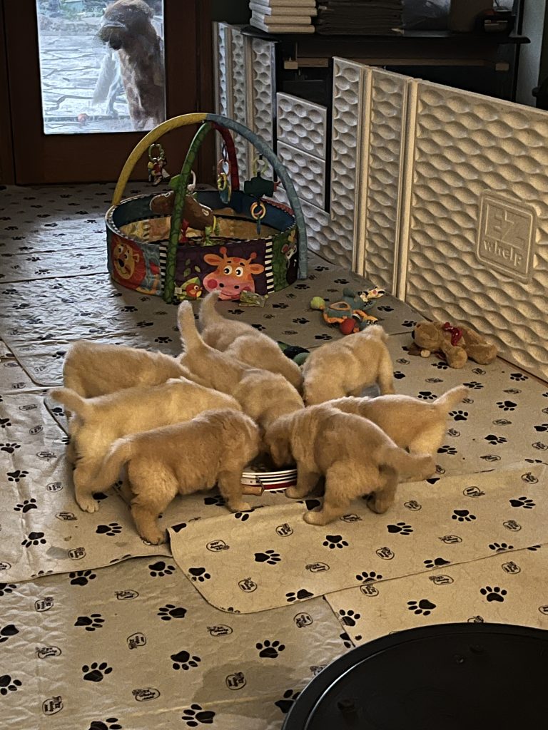 About our home- I ensure a safe and calm environment for the mamas to have fun and do what they were bred to do which is retrieving. Furthermore I provide a 56-day enriching and challenging curriculum for the puppies that provides the critical developmental milestones for puppies to become confident, curious, and well-rounded. By providing this age-appropriate stimulation and activities, puppies build skills and courage to face the world with boundless energy. I believe in high-quality nutrition and supplementation which is optimal for growth and development and seize all opportunities to teach puppies commands, boundaries, and what is expected of them in a home-like setting. I follow the guidelines suggested by Kelly Nichols in her book Puppy Brain to capitalize on these critical developmental milestones to ensure a sound temperament and above-average intelligence.