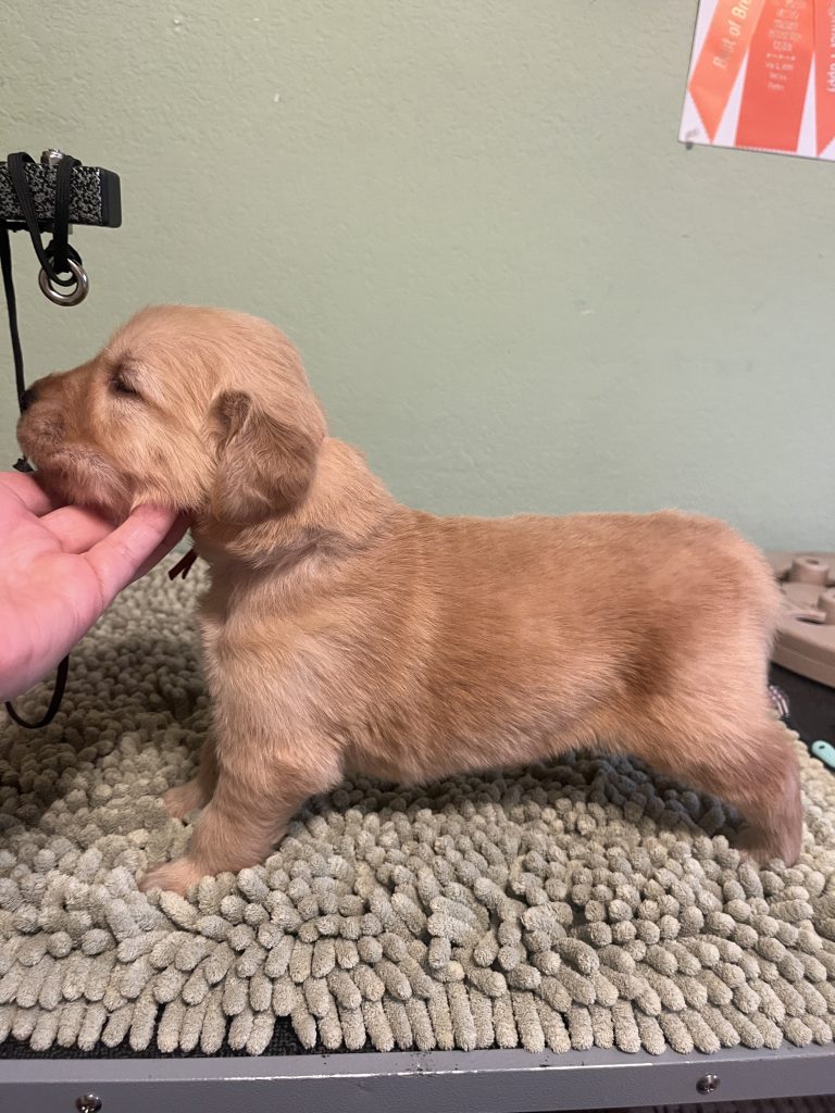 The 3rd day is also the day I start the Early Neurological Stimulation (ENS) therapy to help exercise the neurological system which helps with physiological reactivity and response (think staying calm in adverse or surprising circumstances.) Graceful Goldens pups are well know for being exceptionally calm, well-mannered and ready to learn. You can expect a puppy that will not be jumping up and down demanding for attention and biting at ankles and hands.
